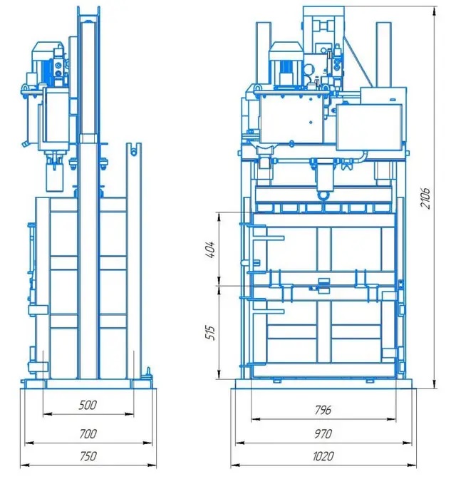 - Wysoka siła nacisku – 10 000 kg – skuteczne prasowanie papieru, kartonu, plastiku i odpadów metalowych