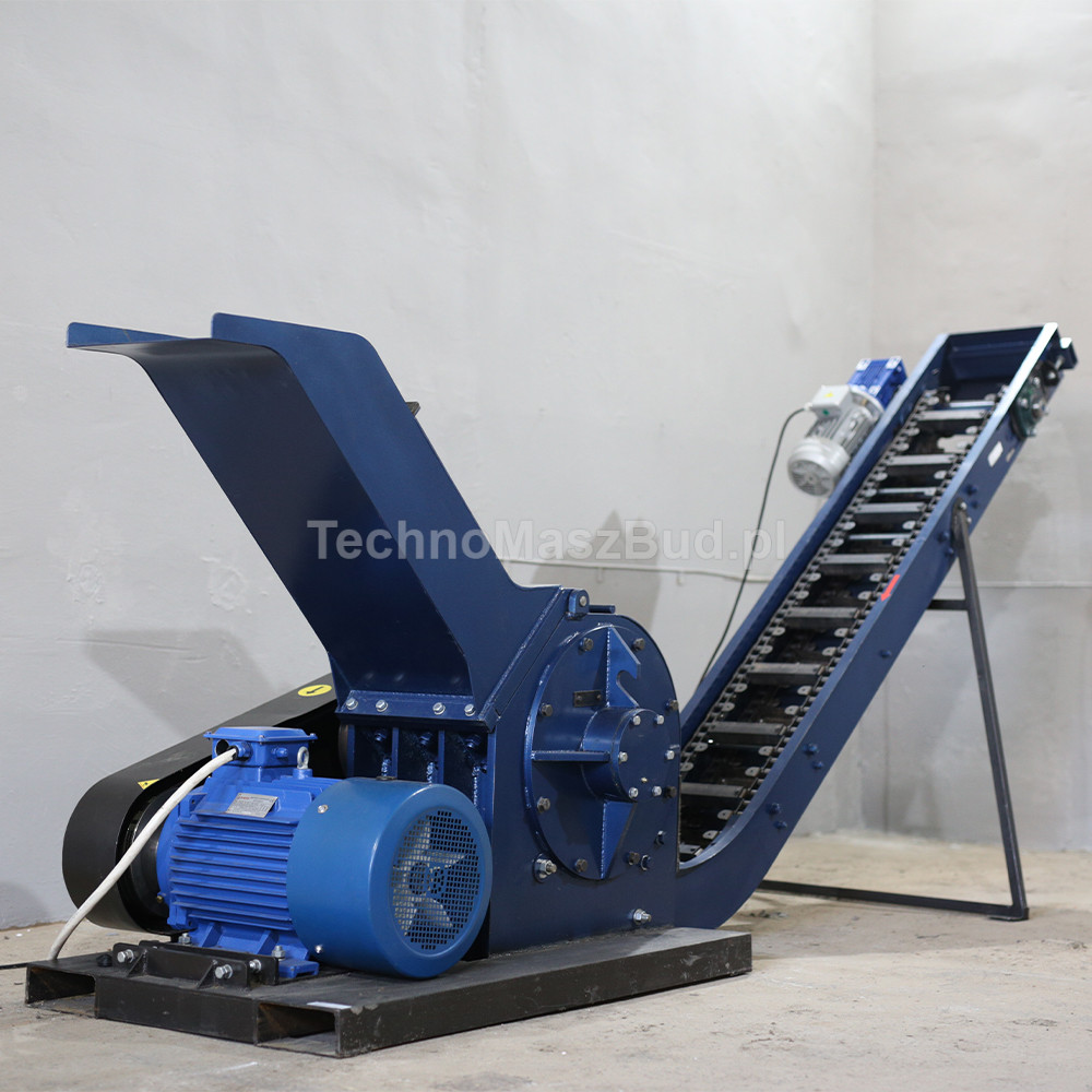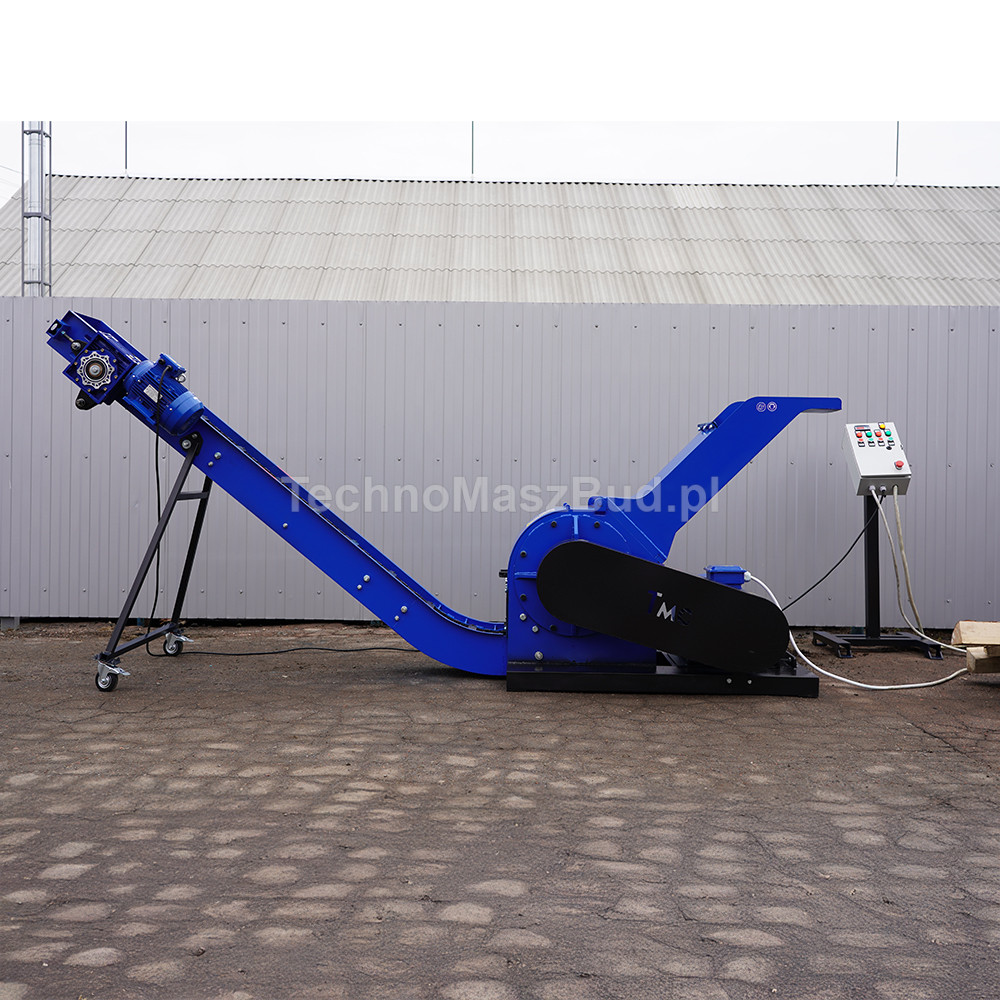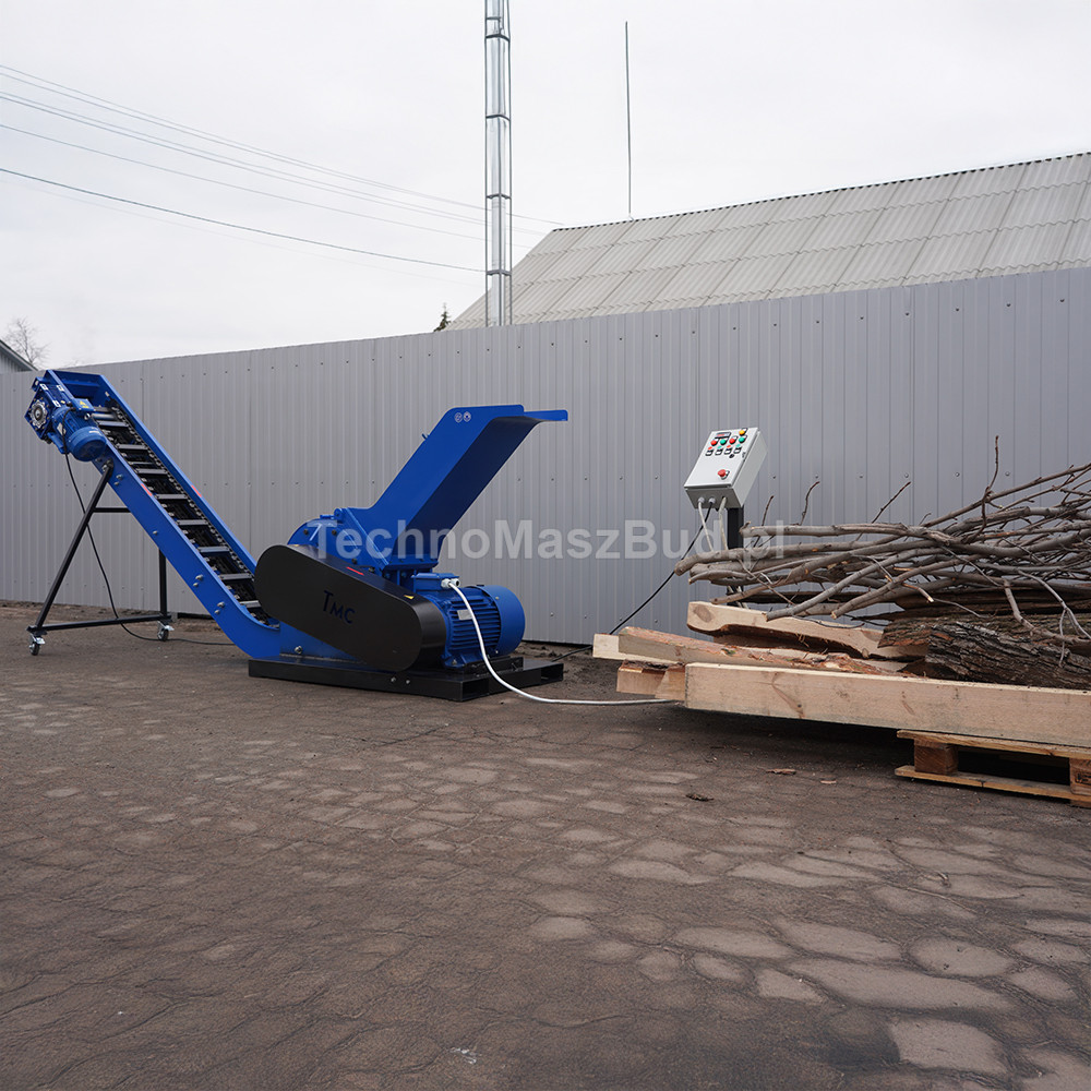 Drtič dřeva na piliny ŻUBR-30 s podávacím dopravníkem je moderní a výkonné zařízení od firmy „TechnoMaszBud“, navržené pro profesionální zpracování a úpravu dřevního odpadu. Stroj využívá bubnový systém ke štěpkování větví, nábytkových zbytků (dřevotřískové desky, MDF, překližka), pilařských odpadů (nehraněné řezivo) a dalších dřevěných materiálů. Získané štěpky mohou být použity jako surovina pro briketování, palivo, stejně jako pro uzení masa a ryb. Výhodou zařízení je velký plnicí otvor 200×350 mm, který umožňuje drcení větších kusů bez nutnosti jejich předchozího řezání.
