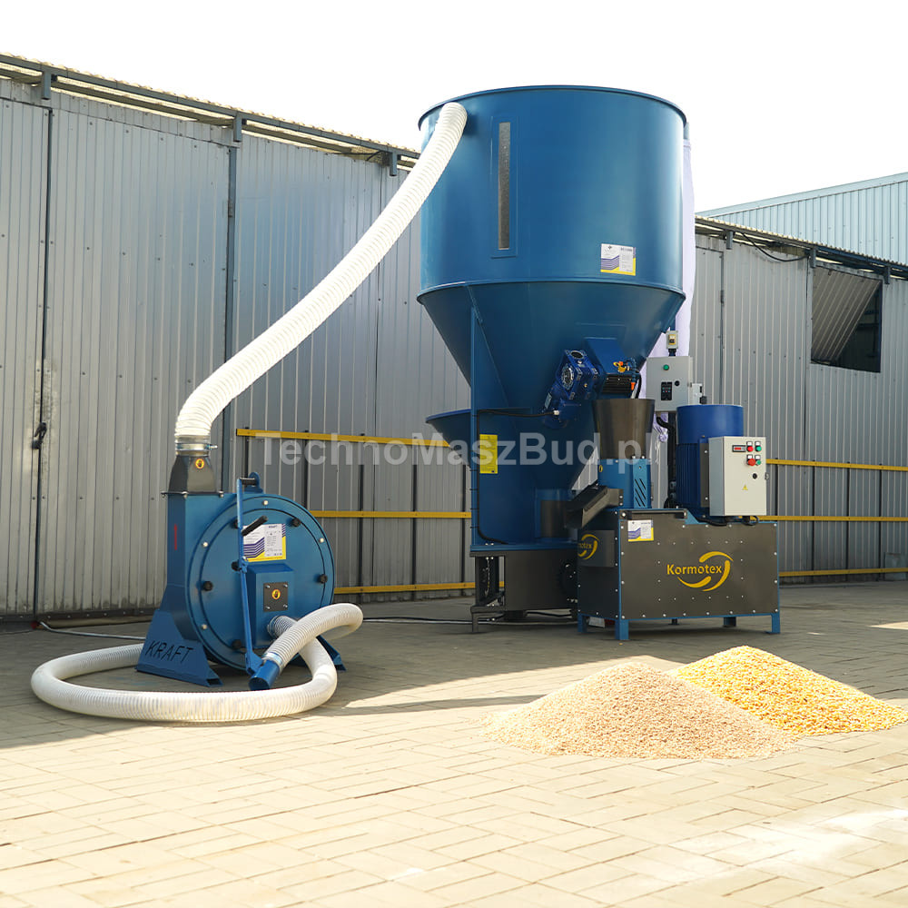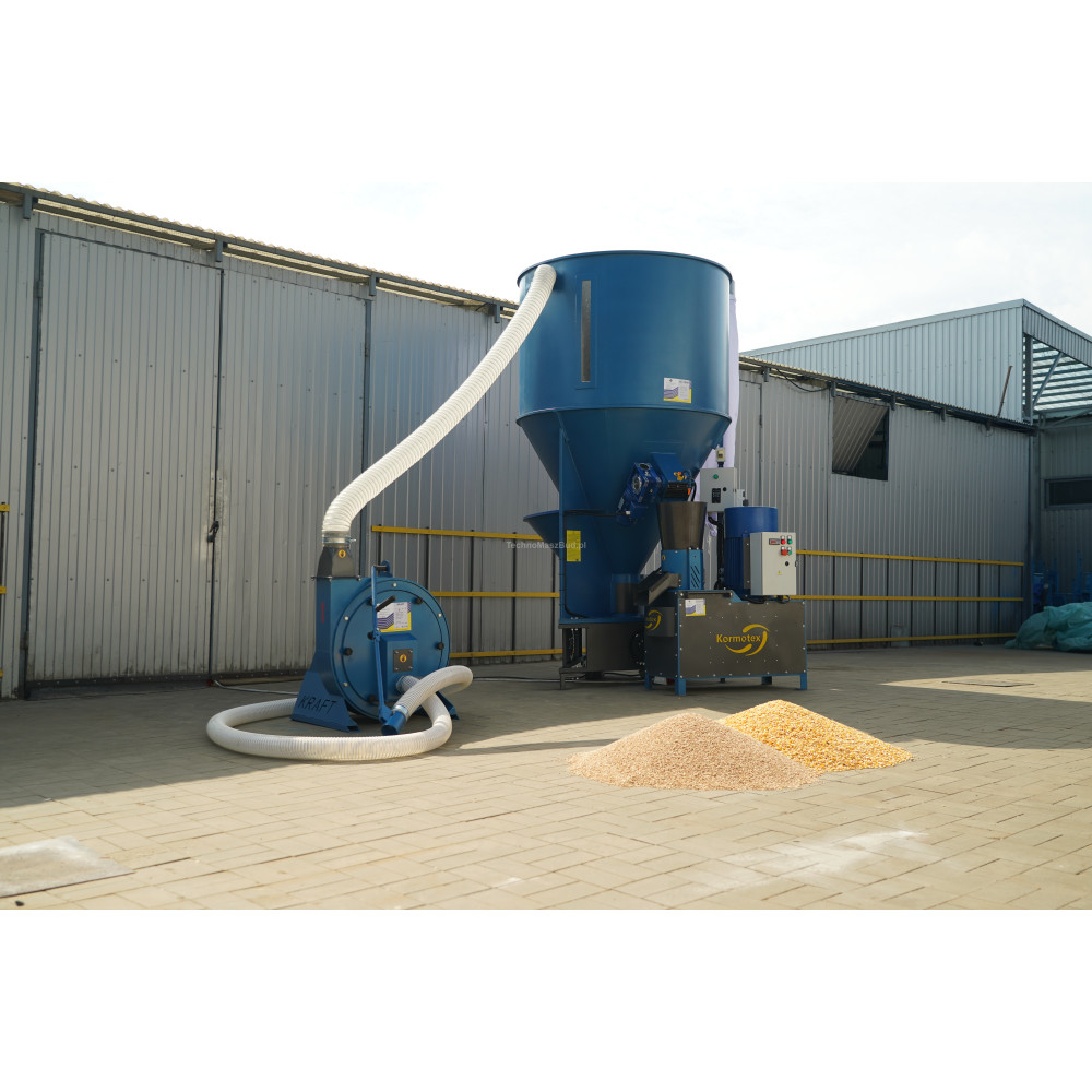 Proces začíná od drtiče KRAFT-11, který mele obilí a pneumaticky jej podává do míchacího zařízení krmiv MP-1000. Následně míchačka spojuje složky do homogenní hmoty, která je pomocí podavače řízeného frekvenčním měničem dopravena do granulátoru KORMOTEX-260. Po vytvoření granulí je produkt chlazen a připravován k balení.