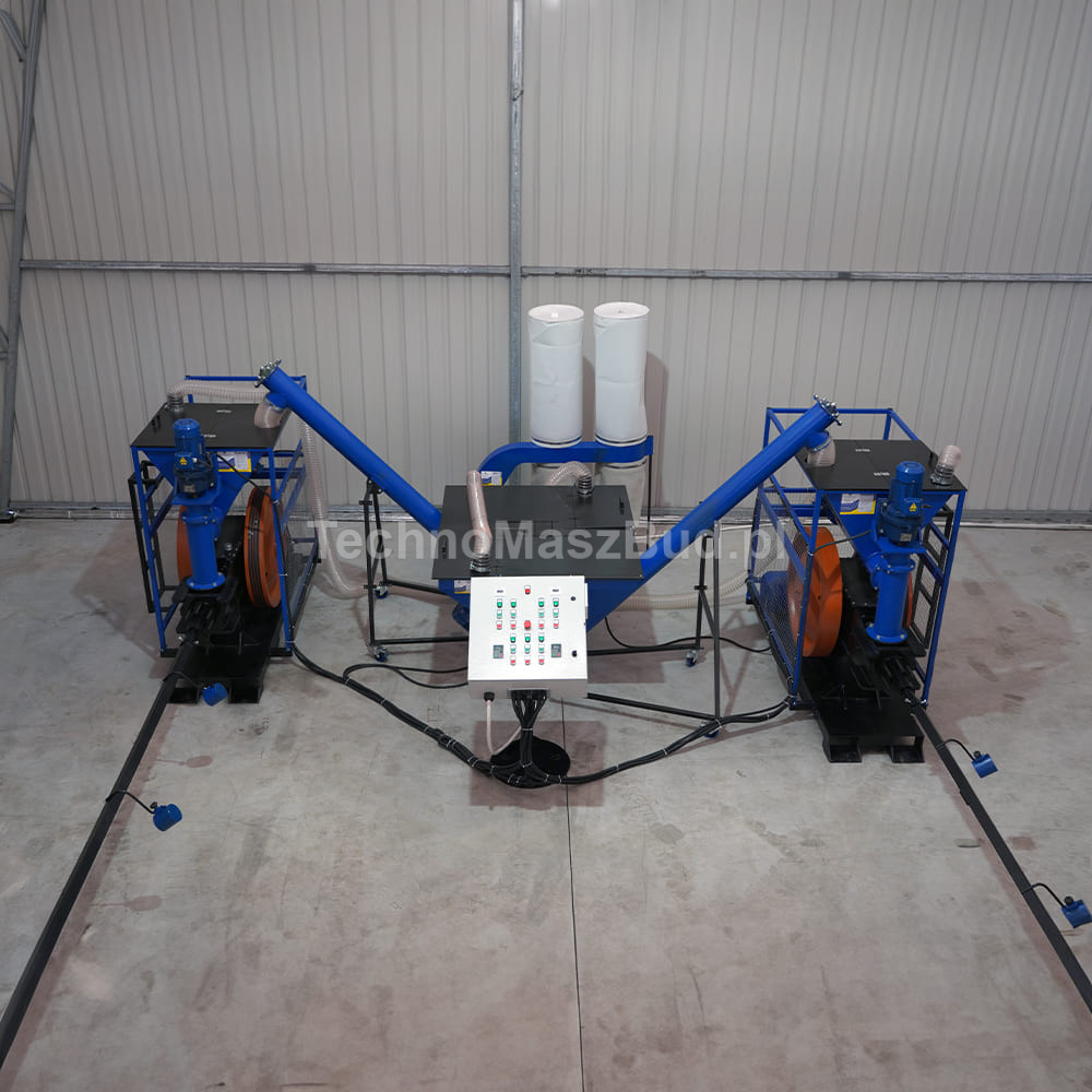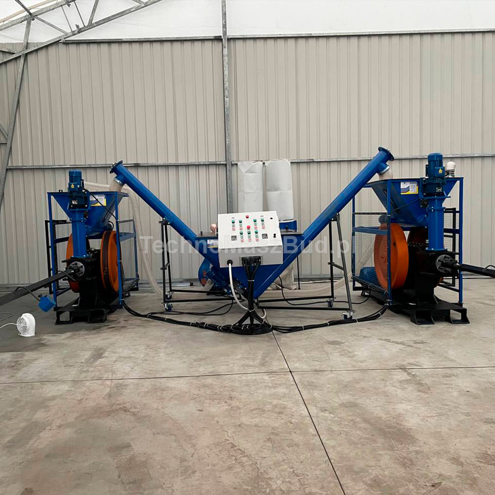 - Šnekový podavač PS-200 DUO – systém dvou nezávisle řízených šneků s frekvenčními měniči, umožňující přesné dávkování suroviny do briketovacích lisů.