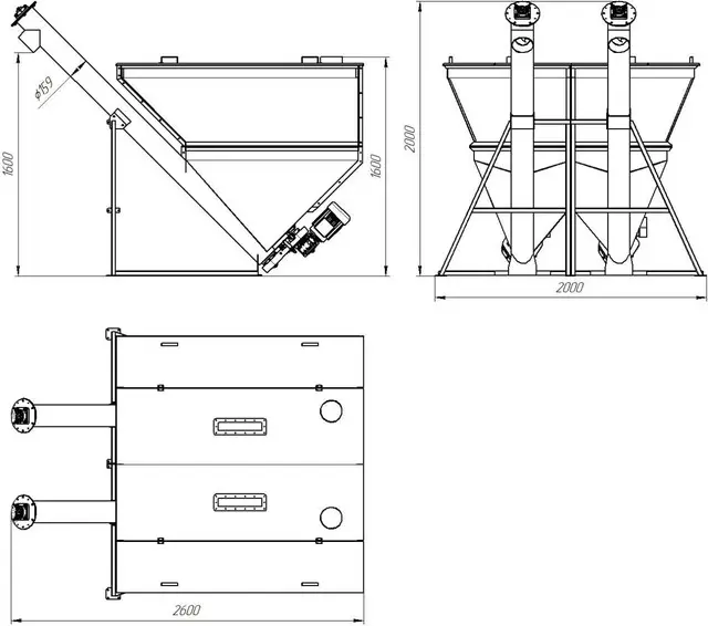 - Dvojité podávání – dva šneky umožňují zásobování dvou odběrných míst nebo zvýšení výkonu jednoho stanoviště.