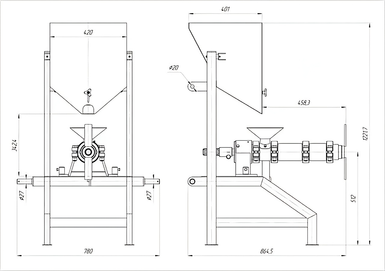 The device enables effective processing of wheat, corn, barley, rye, and cereal mixtures, significantly improving their nutritional value. The extrusion process involves a short-term, intense exposure to high temperature and pressure, during which the structure of the grain undergoes permanent modification. After passing through the die, the raw material takes the form of an easily digestible product with increased energy availability.