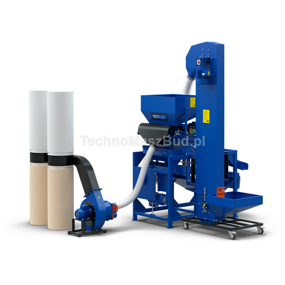 Zestaw wyróżnia się kompaktową konstrukcją, prostym montażem oraz niskimi wymaganiami serwisowymi. Racjonalne zużycie energii oraz stabilna, ciągła praca poszczególnych modułów czynią go optymalnym rozwiązaniem dla gospodarstw rolnych, punktów nasiennych oraz niewielkich linii czyszczących. Efektem jest czysty, jednorodny materiał gotowy do dalszego przetwarzania lub magazynowania.