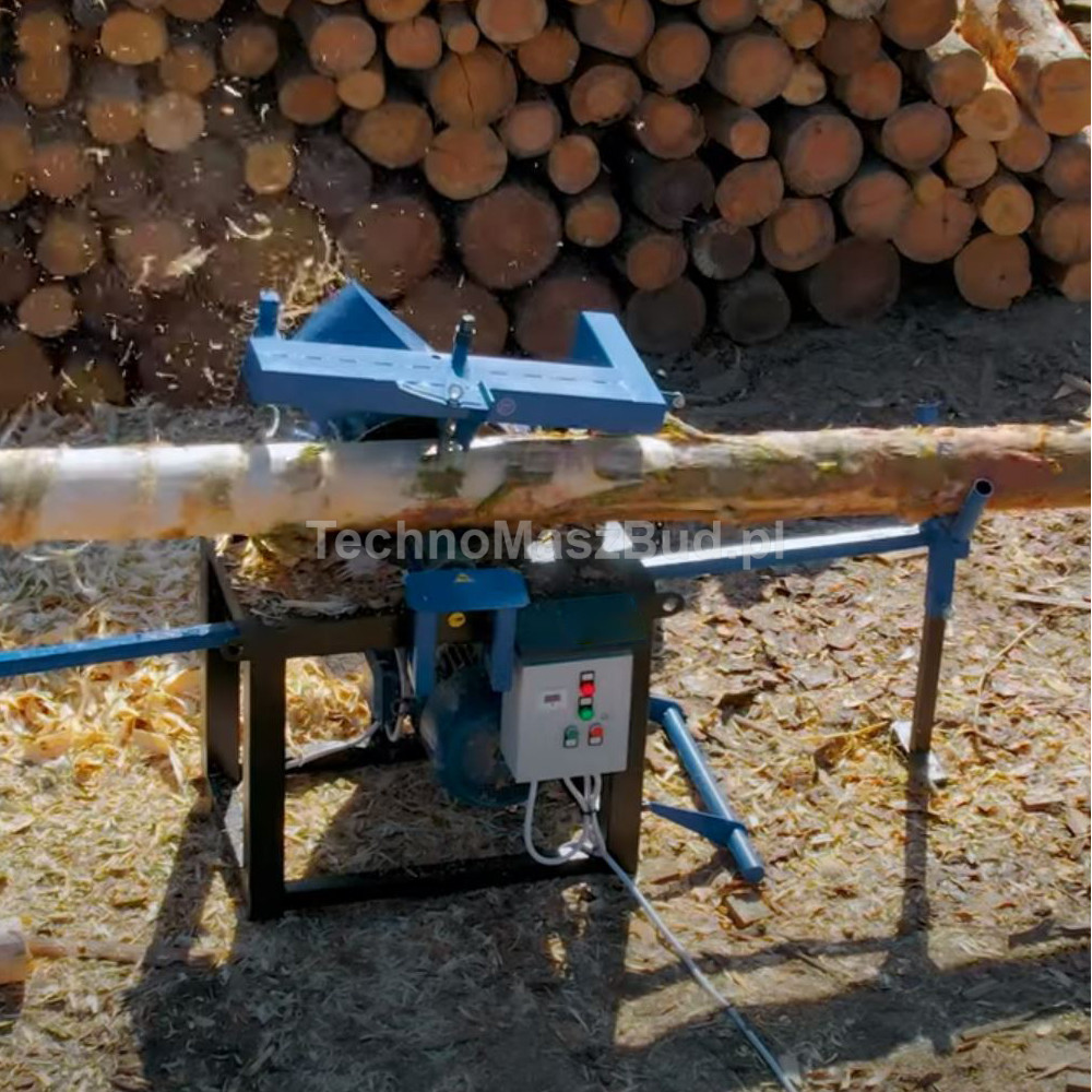 La macchina viene utilizzata per rimuovere la corteccia dai tronchi.
