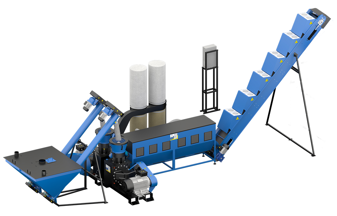 La linea di granulazione può operare come unità produttiva indipendente e, dotandola di ulteriori dispositivi, il processo di produzione del pellet o dei mangimi granulati diventa più efficiente e automatizzato.