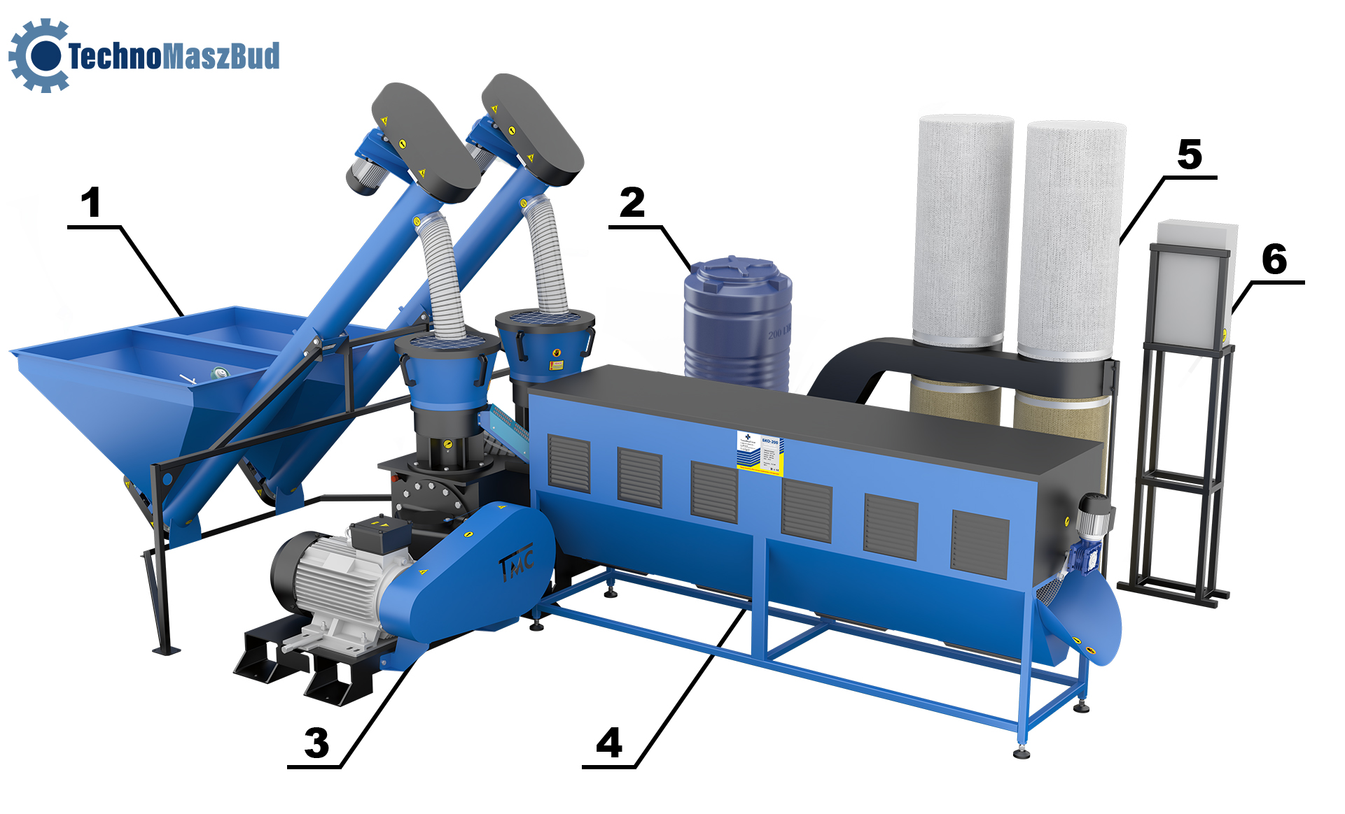 Questo successo è stato ottenuto grazie all’unione di due consolidati granulatore PRIME-300 in un unico sistema integrato. Allo stesso modo sono stati collegati anche i trasportatori a coclea PS-200, consentendo la perfetta sincronizzazione del processo di alimentazione della materia prima. Grazie all’utilizzo di due granulatore, il sistema permette di aumentare notevolmente la capacità produttiva mantenendo una qualità del pellet stabile e ripetibile. La struttura della linea è stata progettata per un uso intensivo e continuo presso aziende agricole e impianti di produzione pellet.