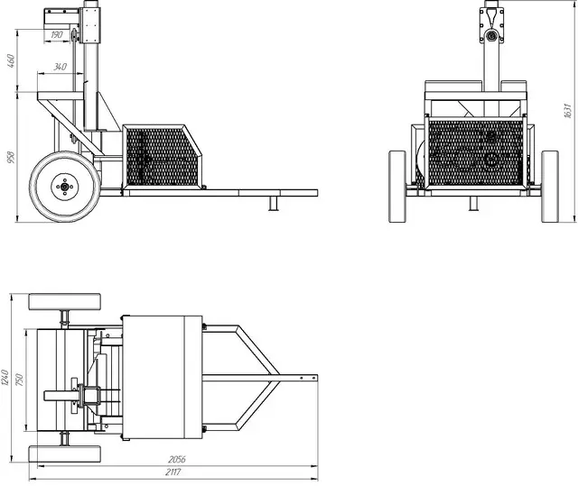Łuparka jest wyposażona w koła samochodowe 13R i mocowanie na hak holowniczy, co umożliwia przemieszczanie jej za pomocą pojazdu.