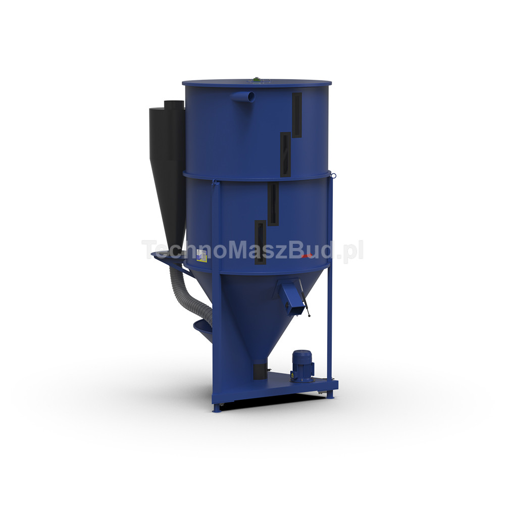 - Skuteczne mieszanie – pionowy ślimak zapewnia ciągłą cyrkulację surowca z dołu do góry, co gwarantuje jednolitą strukturę mieszanki;