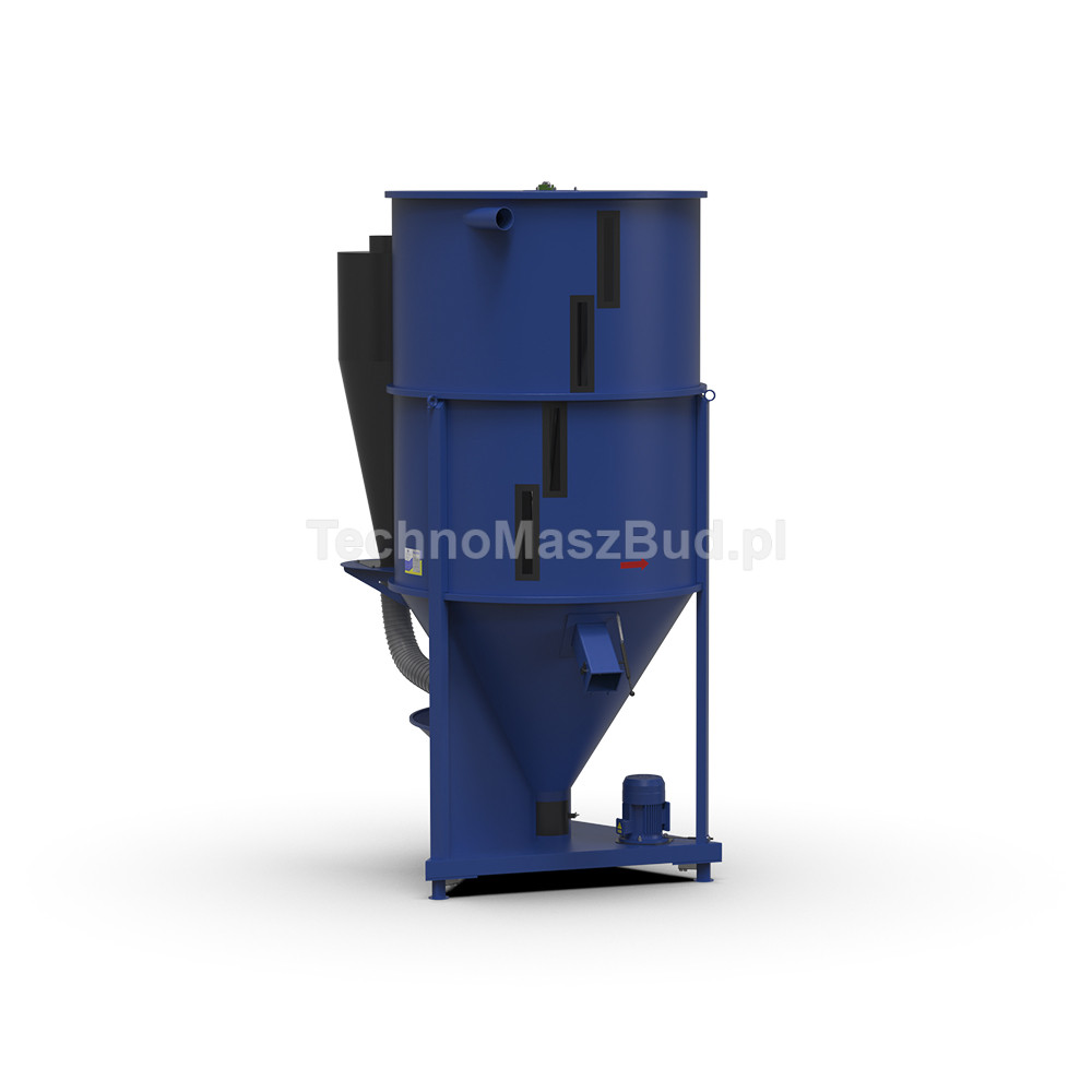 - Wysoka efektywność mieszania – pionowy ślimak zapewnia ciągły przepływ surowca z dołu do góry, co gwarantuje jednorodność mieszanki;