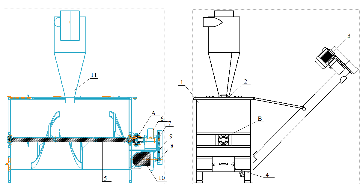 Przy ręcznym załadunku bez cyklonu górna pokrywa otwiera się w całości. Składa się ona z dwóch części: małego okienka inspekcyjnego, przez które można zasypywać surowiec z worka, oraz dużej klapy głównej.