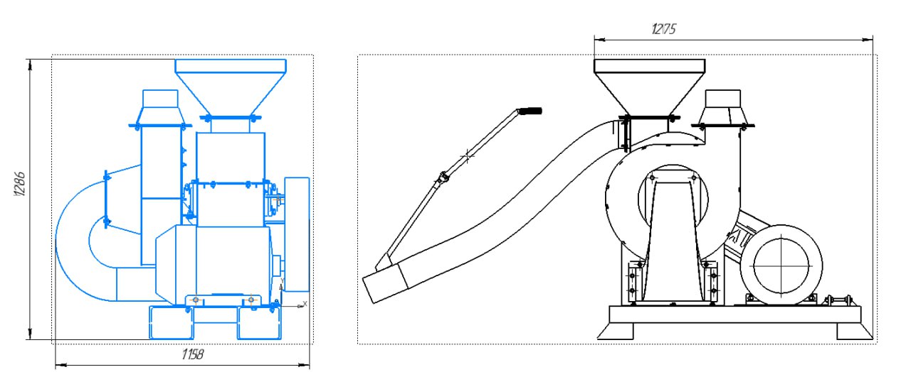 * Die Leistung der Hammermühle hängt von der Art und den physikalischen Eigenschaften des Materials, seiner Feuchtigkeit und dem Grad der Zerkleinerung der Fraktion ab.