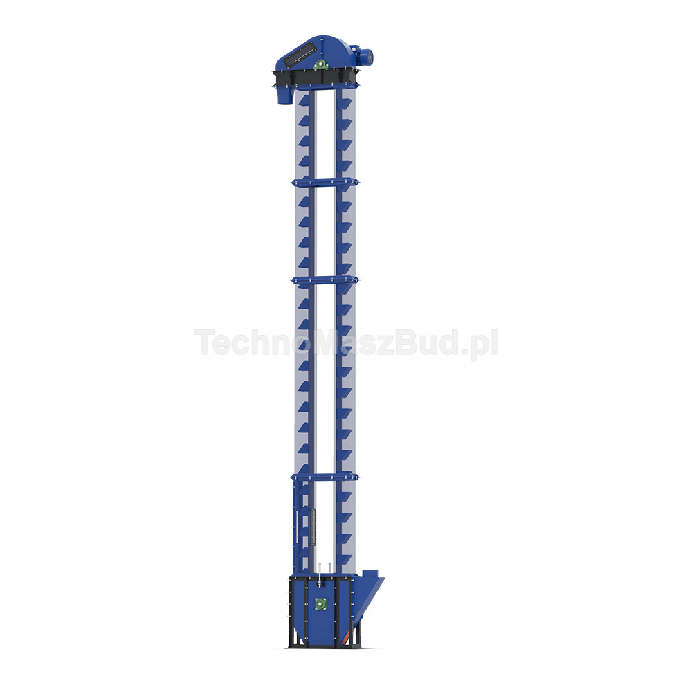 Przenośnik kubełkowy PK-550 to wydajny, pionowy przenośnik o ciągłym działaniu, przeznaczony do transportu zboża oraz materiałów sypkich w górę. Niezastąpiony element linii technologicznych w zakładach przemysłu rolno-spożywczego.