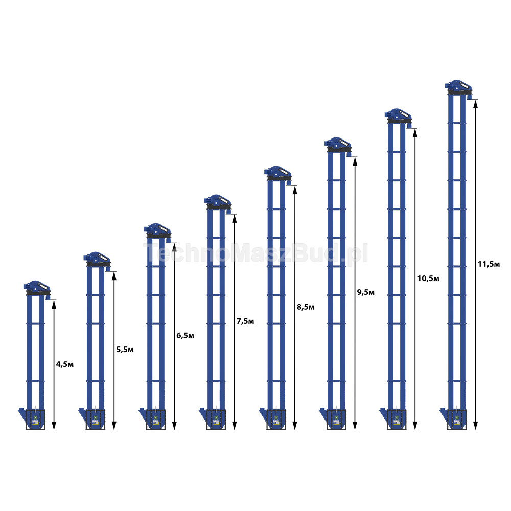 La noria PK-950 funziona in modalità continua, basata su un nastro resistente con tazze che consente un trasporto stabile e sicuro dei materiali in verticale. Grazie alla sua struttura semplice ma ben progettata, richiede solo una manutenzione di base e, con regolari revisioni tecniche, mantiene l’affidabilità anche dopo molti anni di utilizzo intensivo.